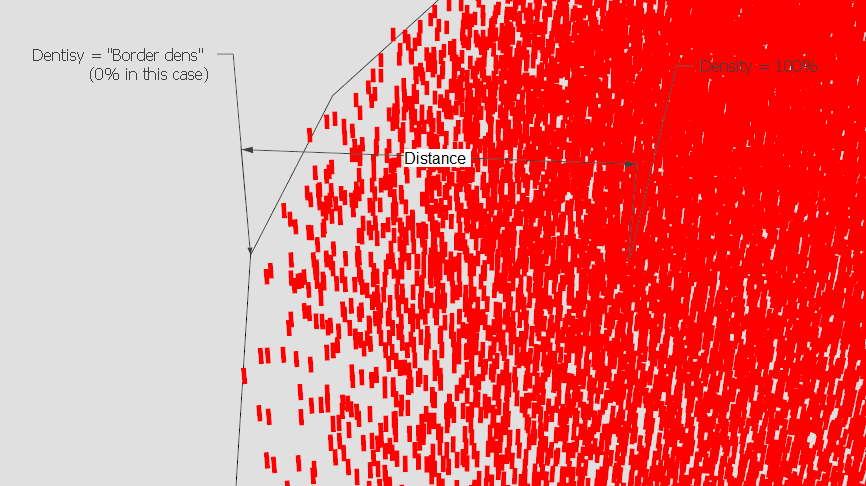 The "Border density" parameter controls the density at the boundary. The default value is 0, which means scattered items will be completely discarded at the boundaries. But this is a percentage that can take any value.