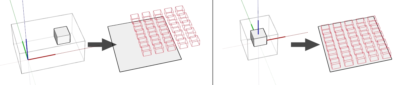 You can choose whether Skatter uses the group/component axes origin to insert it, or the bottom center of its bounding box.
