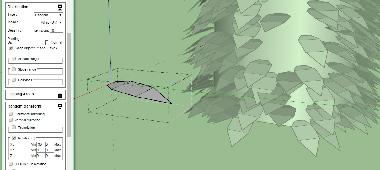 Use random X rotation between -30 and 0 (or other values) to control how much the leaves will lean to the ground. You can also put some random Y and Z rotation for more diversity.